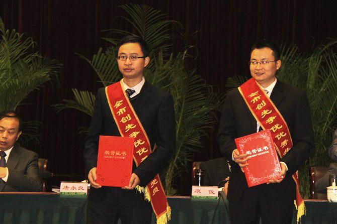 我黨支部副書記李紅兵(左)在頒獎典禮上領(lǐng)取榮譽證書
