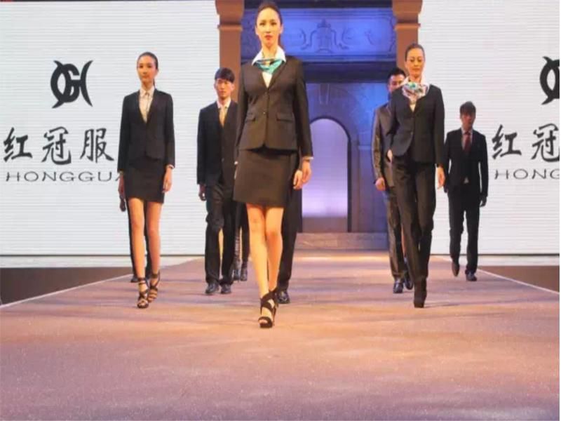 在炫麗的燈光和音樂聲中,身著裁剪得體設計新穎西服的男女模特出現(xiàn)在人們的視線中,率首為大家展示的是紅冠服飾旗下西服品牌“杰弗力雅” 男士西服、高檔商務西服、修身西服、商務女西服、時尚女西裝系列。以人體工程學為準則的版型設計,優(yōu)良的裁剪,精致的做工彰顯品質(zhì),將國際流行的歐美板型與傳統(tǒng)工藝巧妙結(jié)合。紅冠著力營造都市男、女性優(yōu)雅、知性、輕松、大方、不失品質(zhì)和品位的視覺感受。把引領風尚的男裝、女裝時尚職業(yè)裝帶給各界精英、普通百姓?!敖芨チρ拧逼放拼碇鴷r尚設計與較好制造工藝的完美融合。